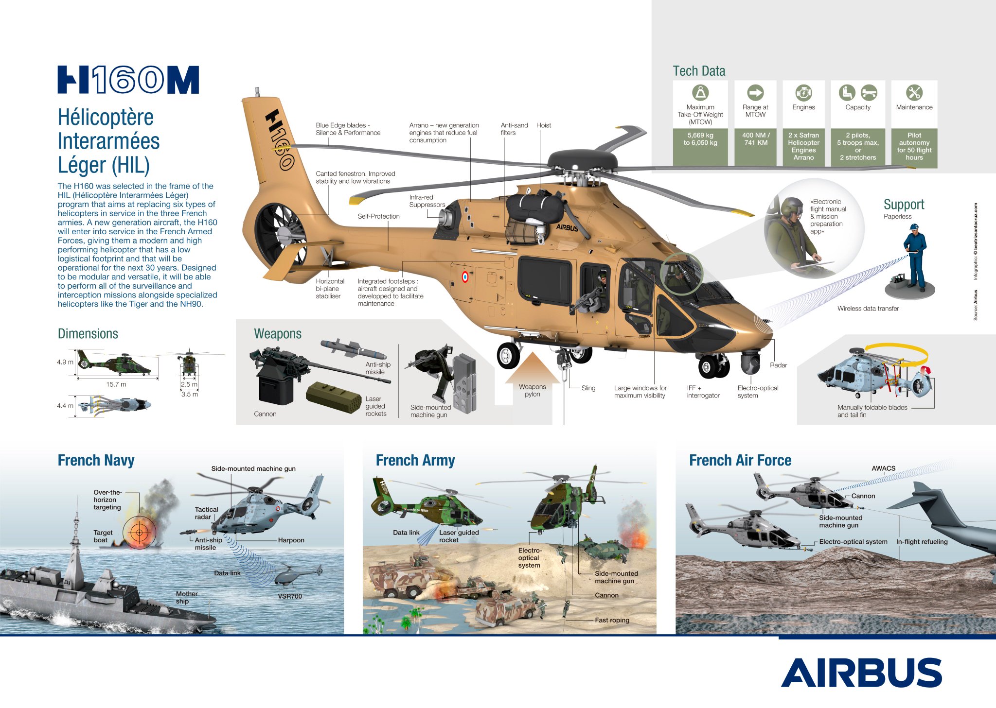 Lazarus escribió:El H160M seria el substituto perfecto para el AB212 de la Armada, aunque queda algo por debajo de los Foxtrot: El H160M tiene un MTOW de 6t, y el del Foxtrot se va a casi 10t.